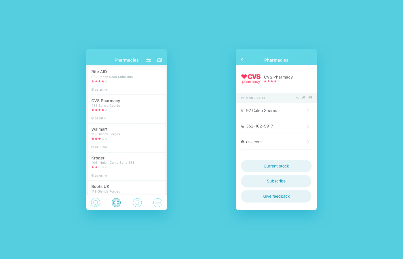 On the pharmacy card, we can get in several ways: from the results of the search for the nearest pharmacies in the pharmacy section, as well as from the pharmacy price offer card for the product.